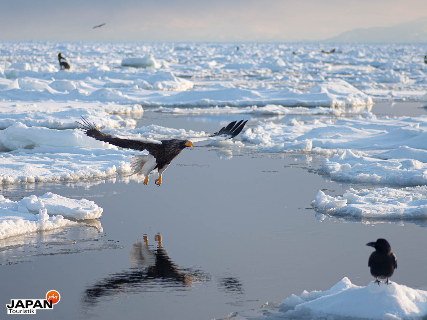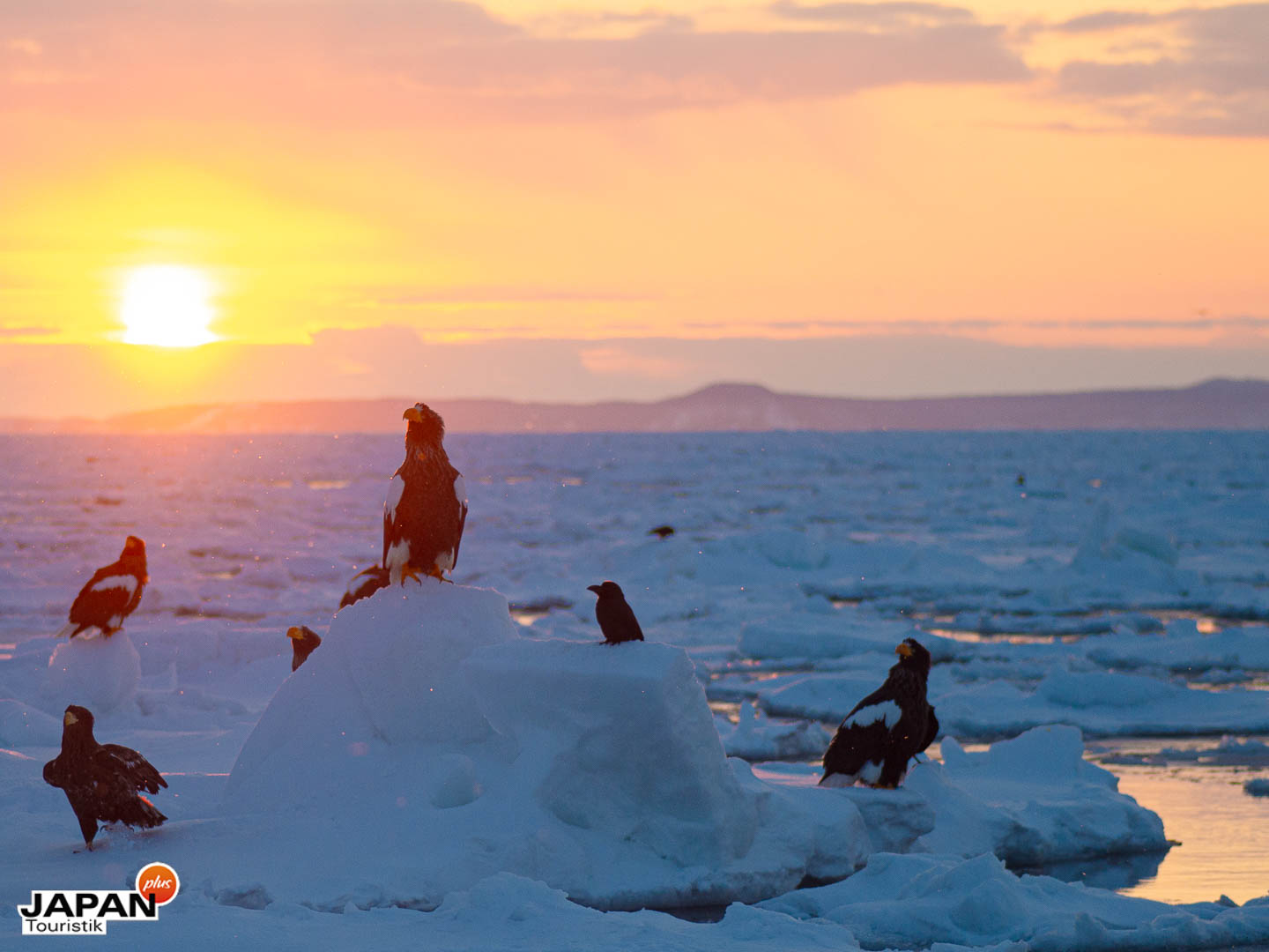 Mit dem Flugzeug geht es dann in den hohen Norden Japans nach Hokkaido. Hier sehen wir mit etwas Glück Mandschurenkraniche beim Paarungstanz, Riesenseeadler am Treibeis und vielleicht sogar einen Riesenfischuhu. Das ganze kombinieren wir mit der beeindruckenden winterlichen Vulkanlandschaft in Teshikaga und dem UNESCO Weltnaturerbe Shiretoko.